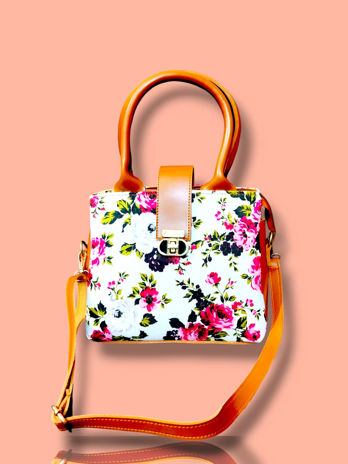 🌸 Premium Canvas + Rexine Crossbody Bag with Long Strap