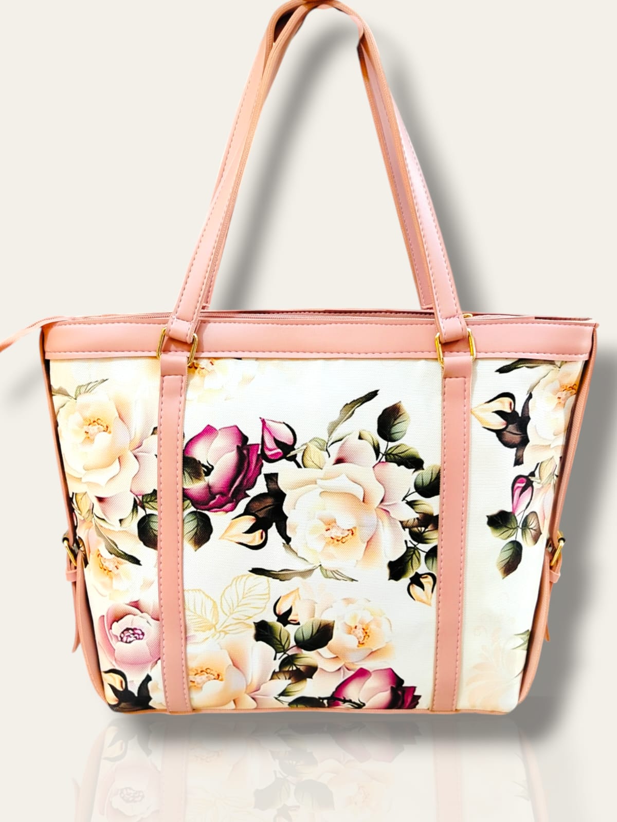 ZELLBURY Elegant Floral Canvas Tote Bag